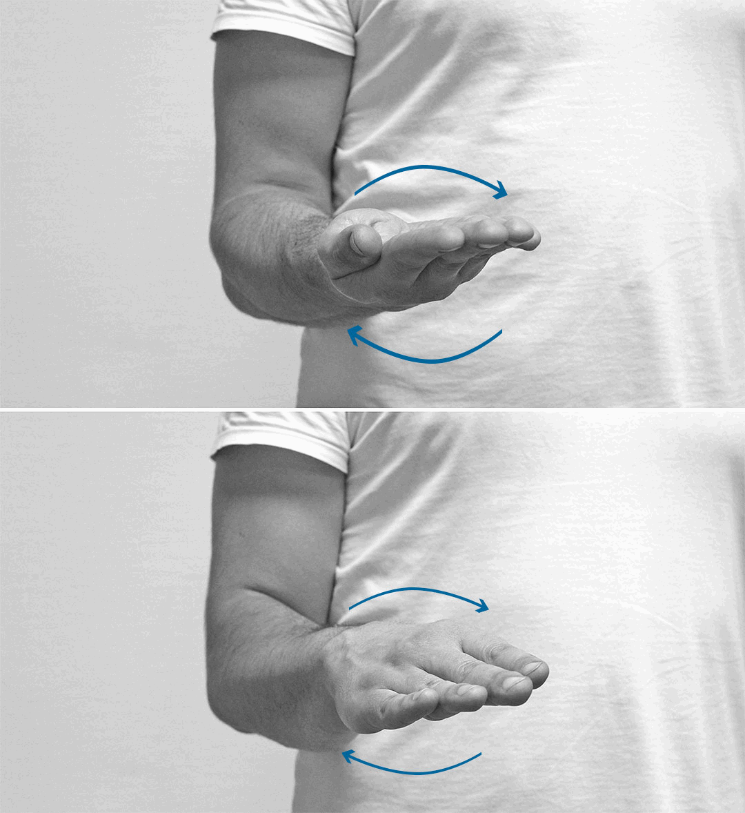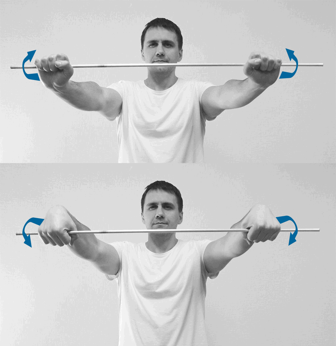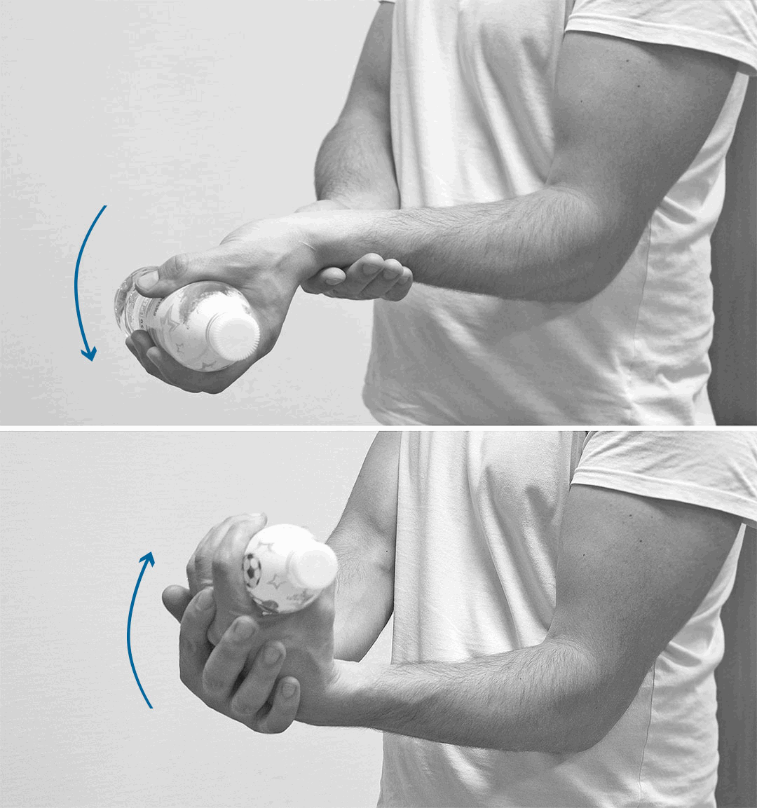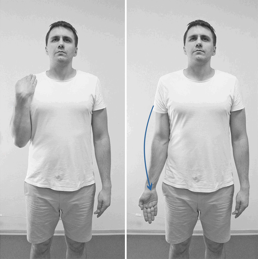 Аккуратно надавите здоровой рукой на пальцы поврежденной руки с тыльной стороны, чтобы усилить сгибание в запястье. Удерживайте 15-30 секунд. Затем разогните кисть, и осторожно нажмите на пальцы в обратном направлении, чтобы усилить разгибание. Удерживайте также 15-30 секунд. 3 повторения в каждую сторону.
