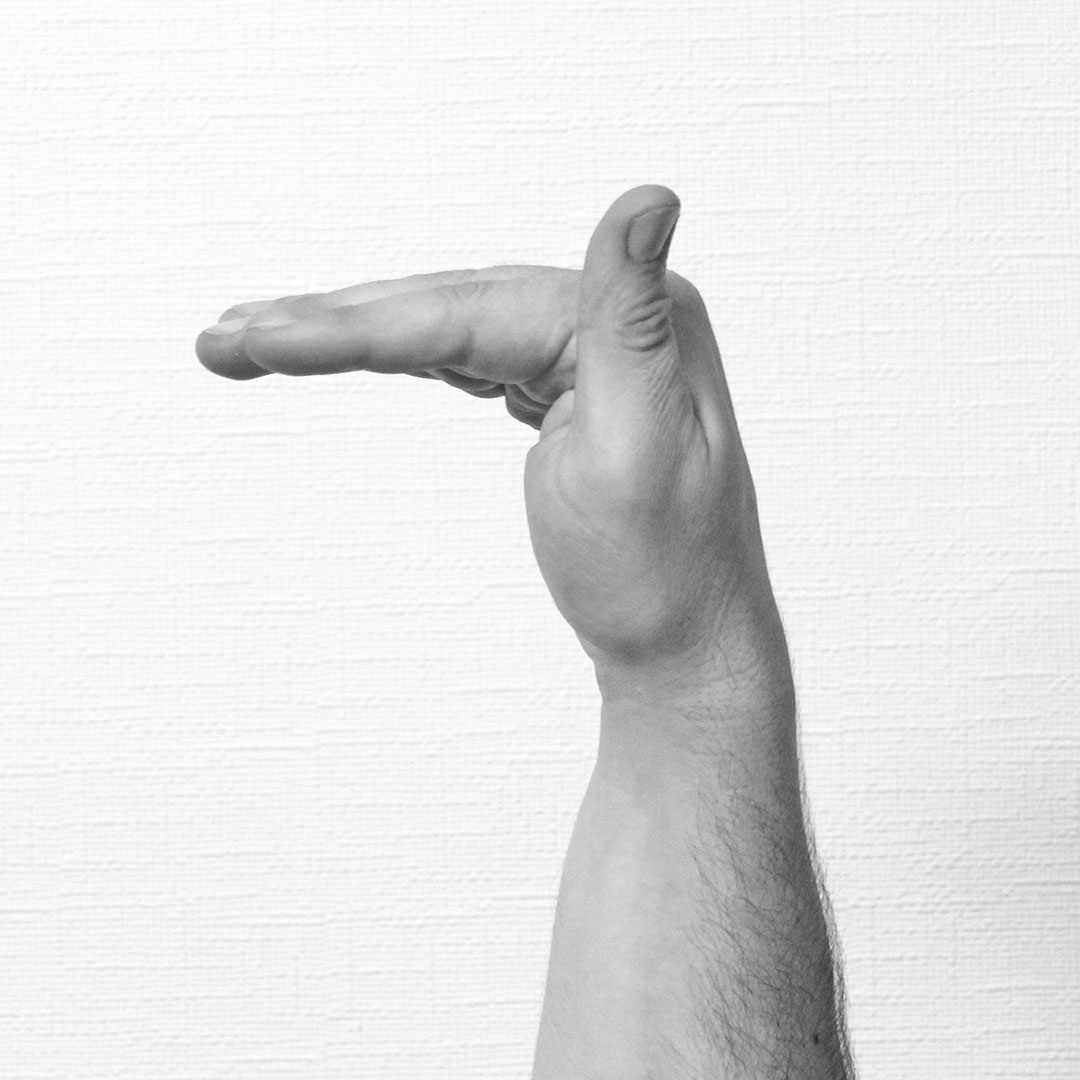 Пальцы разрабатываемой руки согните под прямым углом (как на фото). Удерживайте 10 секунд. Повторить 5 раз.